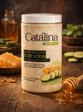 Discover the perfect balance between gentle exfoliation and deep hydration. Catalina’s Cucumber & Honey Body Scrub removes dull surface skin while nourishing and refreshing for a smoother, healthier-looking glow.