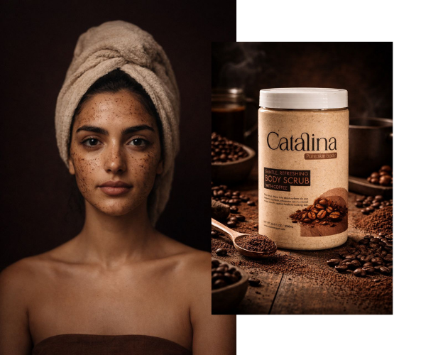 At Catalina, skincare meets luxury. Our exclusive scrubs, serums, and creams are formulated to enhance glow, smooth texture, and elevate your natural beauty.